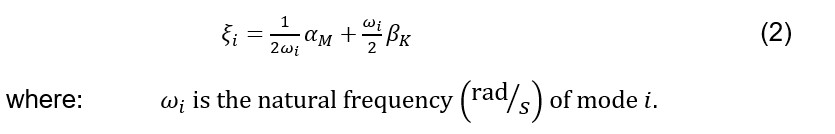 Damping of mode i is quantified by the damping ratio, ξi, the ratio of the mode’s damping to the critical value. If αM and βKare known, ξi can be calculated from: